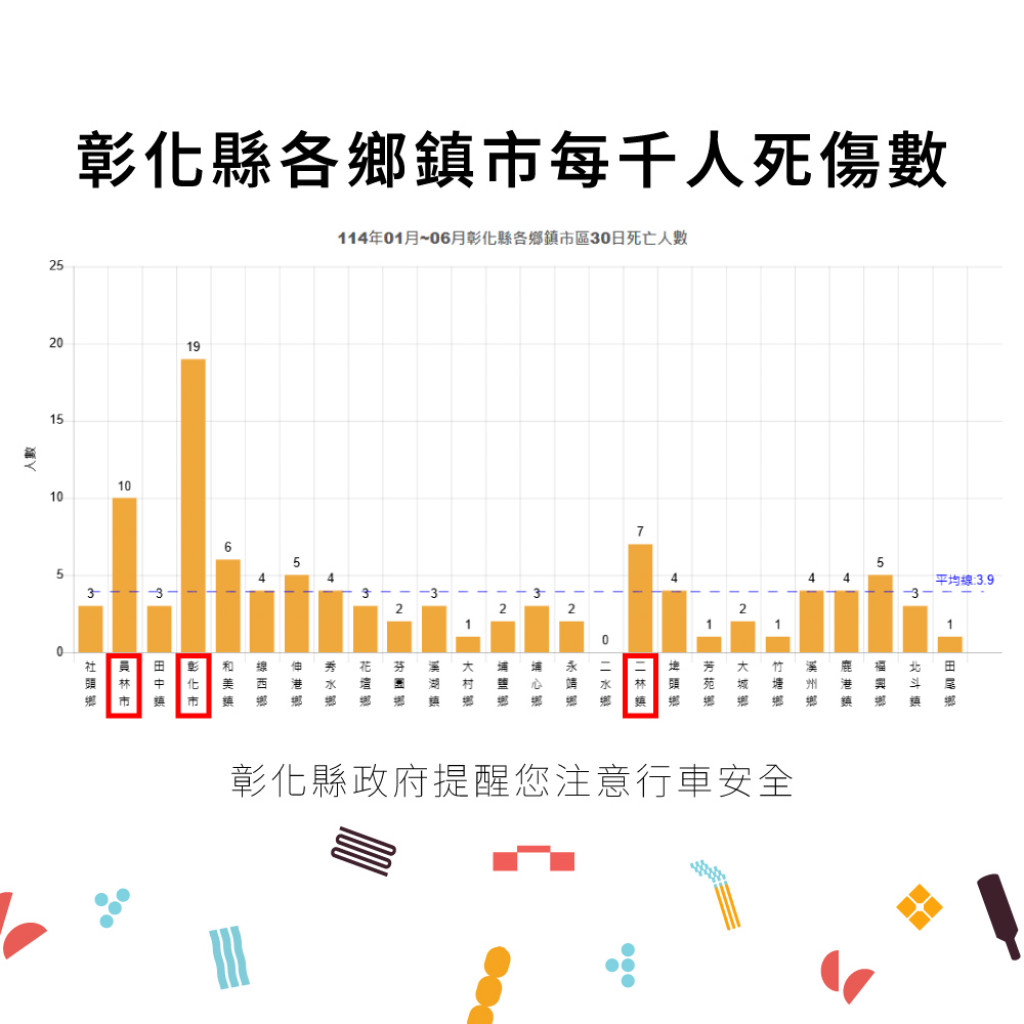 彰化縣114年1-6月道路交通事故死傷累計15,648人