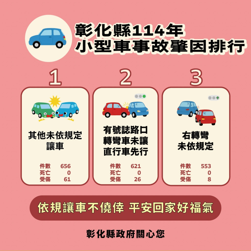 | 三、 | 依據交通部道路安全資訊平台系統分析數據,114年彰化縣事故肇因排行: |