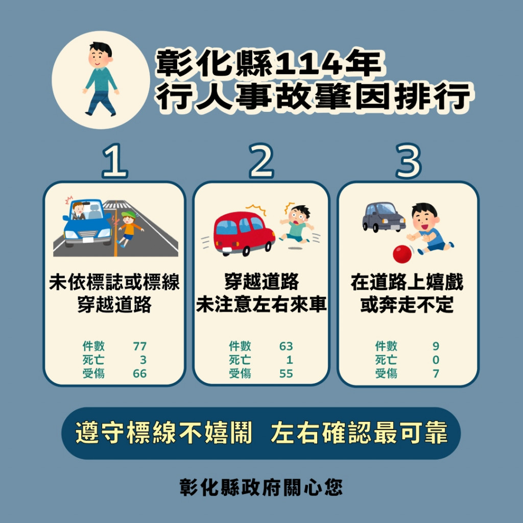 | 四、 | 115年2月份彰化縣A1事故8人,相較去年同期增加2人,其中年輕學生自撞死亡事故遽增,共導致3人死亡。 |